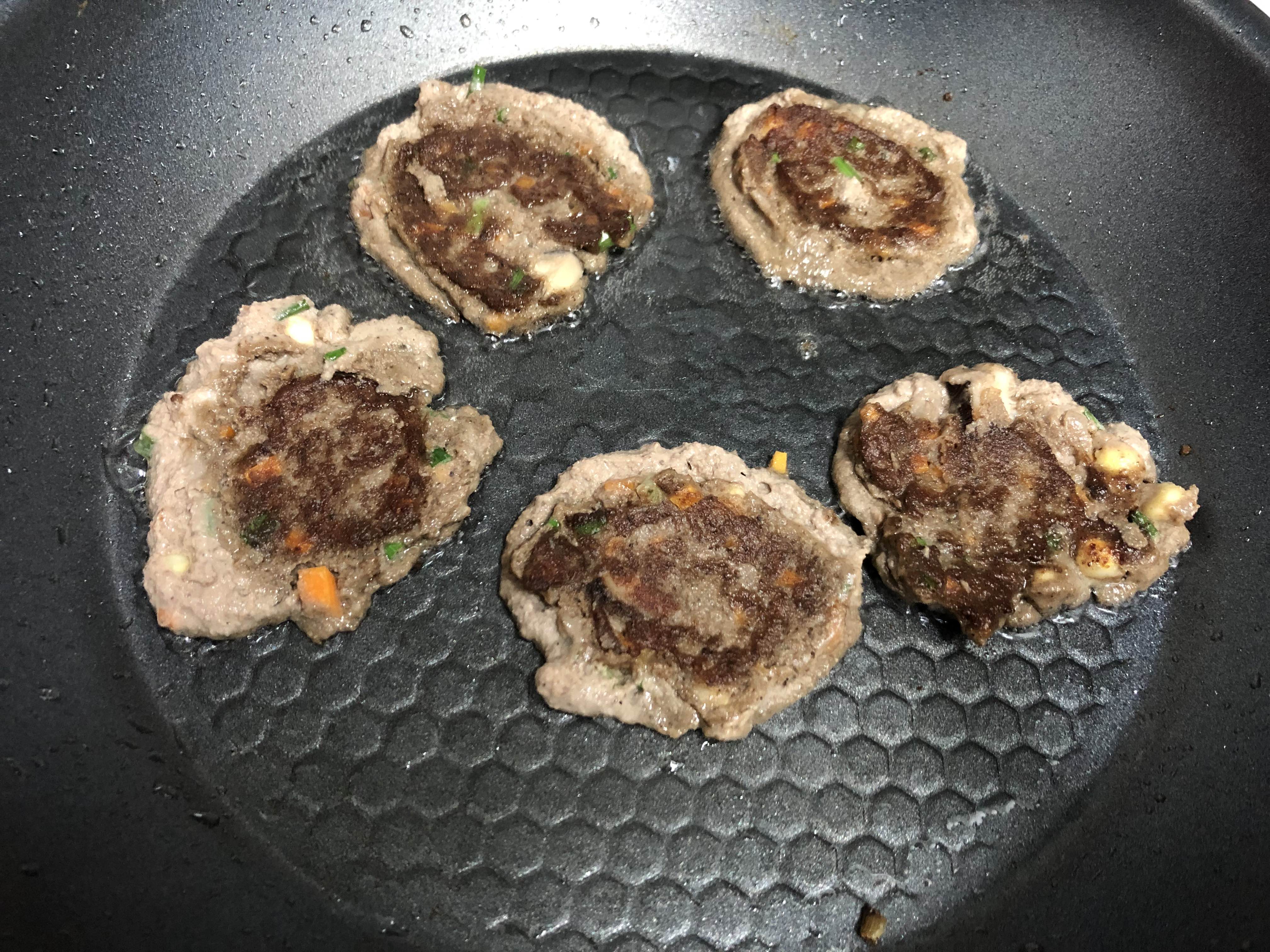 되직한 반죽을 숟가락으로 떠서 팬에 구웠다.